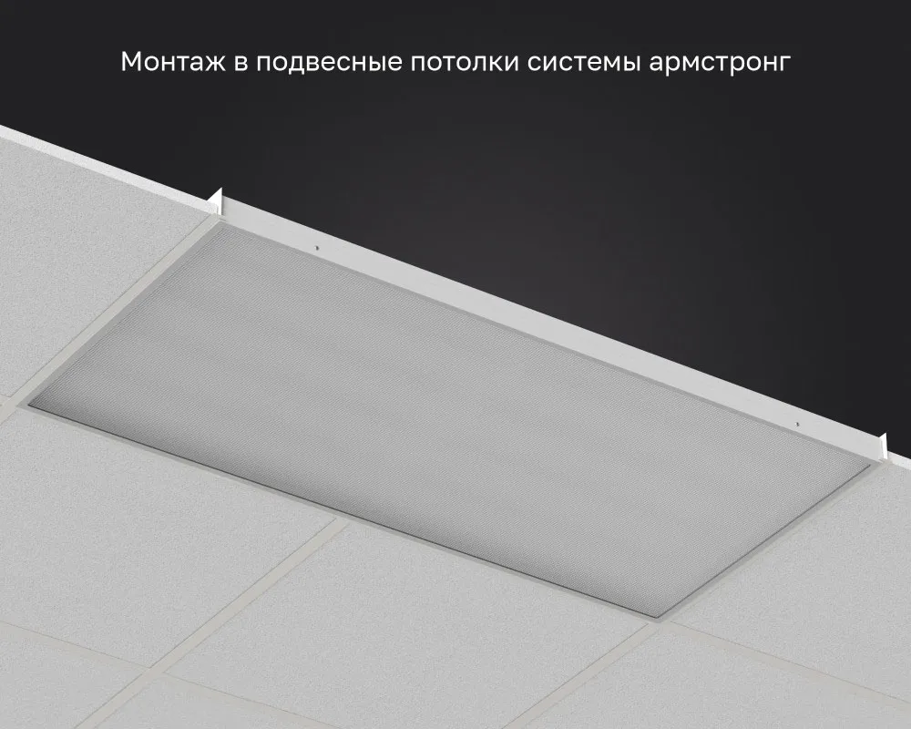 Офисный светодиодный светильник легко и быстро устанавливается на любые поверхности стен и потолков. Встраивается в подвесные потолки или устанавливается на подвесы.